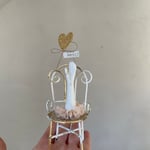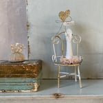 La petite chaise mesure 10cm de hauteur, 6cm de largeur, 6cm de profondeur