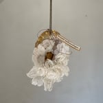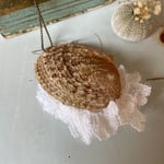 Bijou murale réalisé dans un ormeau orné d une fragment de papeterie , de dentelle ancienne et d une étiquette réalisée avec une phrase glanée dans un livre chiné
