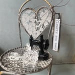 Chaise miniature en métal , patinée et dorée par mes soins , dentelle ancienne