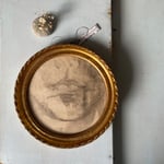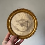 Cadre chiné rond orné d’un fragment de dessin au fusain ancien