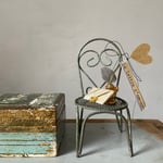 Chaise miniature en metal ,ornée d un encrier et de sa plume et d une lettre d’amour