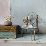 La petite chaise mesure 10cm de hauteur, 6cm de largeur, 6cm de profondeur