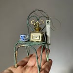 La petite chaise mesure 10cm de hauteur, 6cm de largeur, 6cm de profondeur